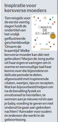 “Ik denk dat veel kraamvrouwen en hun partners hier wat aan kunnen hebben. Het is zeker belangrijk dat er tijd en aandacht besteed wordt aan de intense eerste weken na de bevalling. Het boekje ligt op de afdeling ter inzage en wij zullen de kraamvrouwen erop wijzen dat dit boekje er is.”